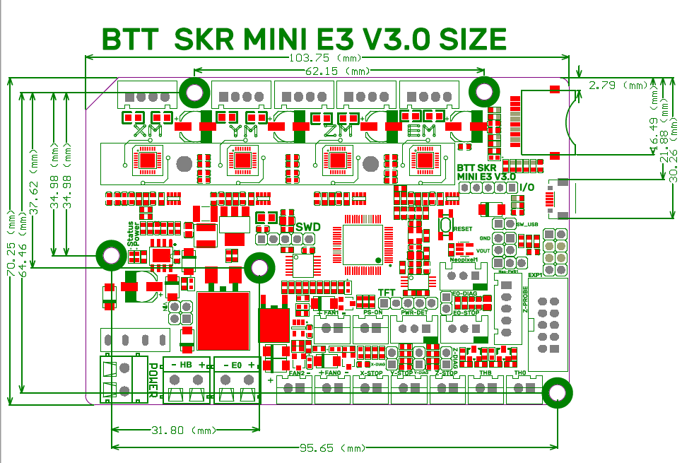 | Product size:103.75*70.25mm | Mounting size:Please refer to BTT SKR MINI E3 V3.0-SIZE.pdf for more | |||