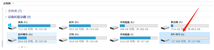 (2) Connect USB-C to computer, then you will see a USB flash drive named RPI-PR2, copy compiled klipper.uf2 file to the USB flash drive, the motherboard will automatically reboot and update the firmware, the computer will re-identify this USB flash drive means the firmware update is complete, unplug the jump cap and click the Reset button to enter normal working mode.