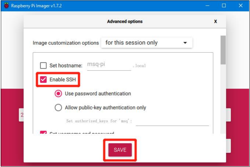 The step of using the Raspberry Pi Imager to write the OS image is exactly the same as the LITE version. Note: the SSH function should also be enabled.