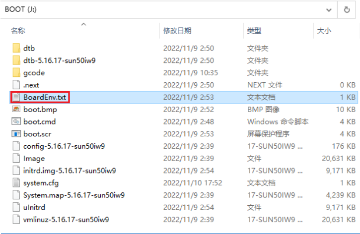 After the OS writes to the SD card, there is a FAT32 partition named BOOT, open "BoardEnv.txt" file with Notpad, Notpad++ or VSCode.