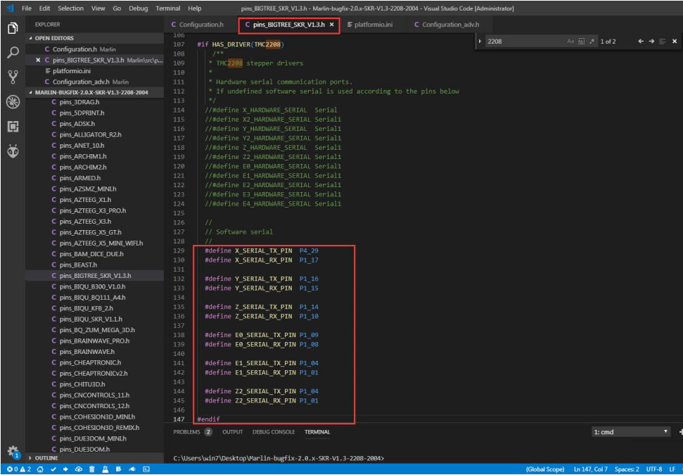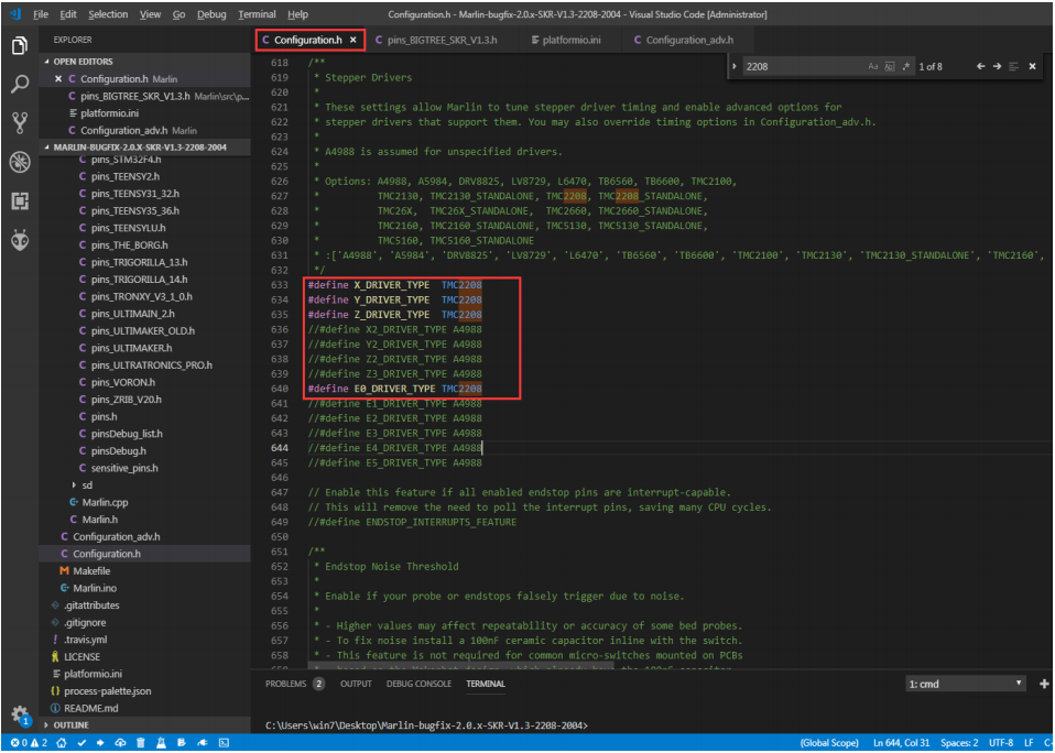 For example, (Marlin-2.0)BIGTREETECH SKR V1.3: