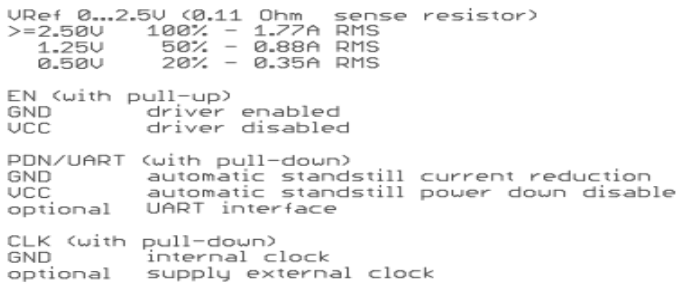 When the motor is not moving, the standby current of the motor can be reduced dynamically (through UART).