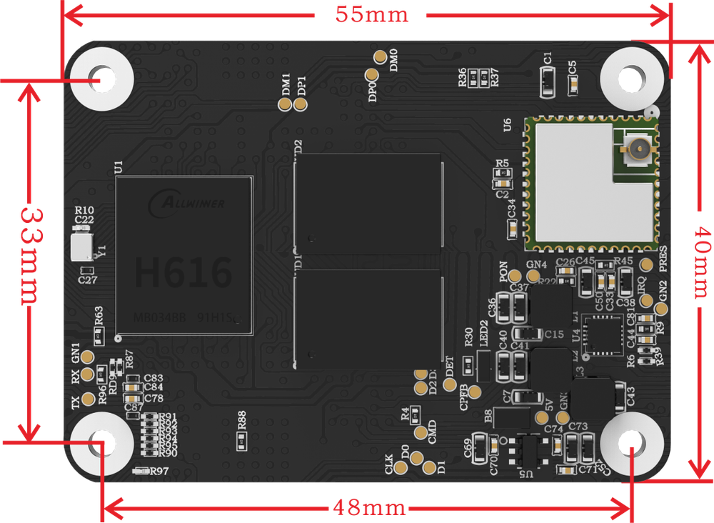 - CPU: 全志 H616,四核 Cortex-A53 @1.5GHz
