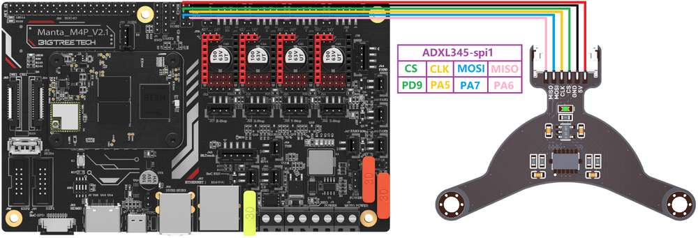 请参阅此处:https://www.klipper3d.org/Measuring_Resonances.html,连接到M4P主板时,我们可以参考以下接线和配置