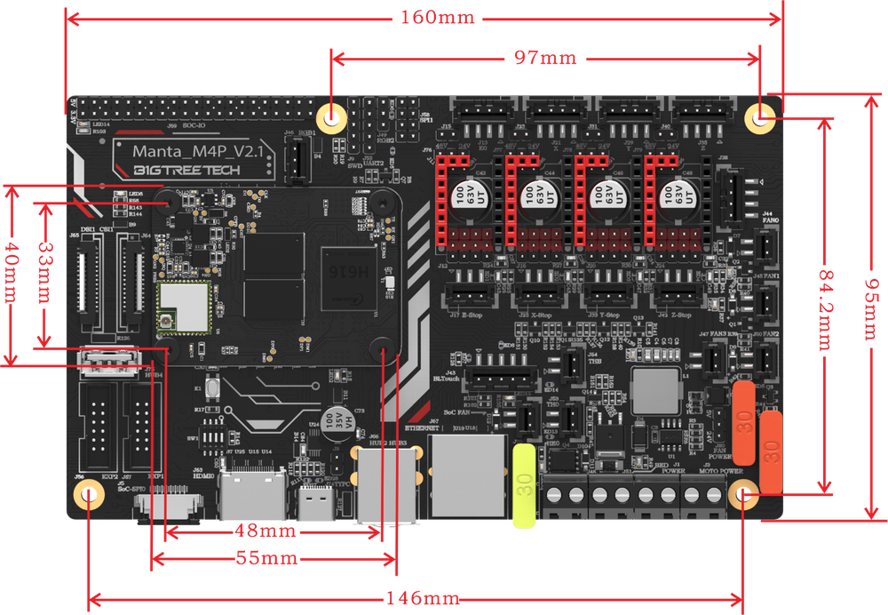 BIGTREETECH M4P是一款使用CM4 BTB头的4轴主板,可以完美地与CB1或CM4配合使用。