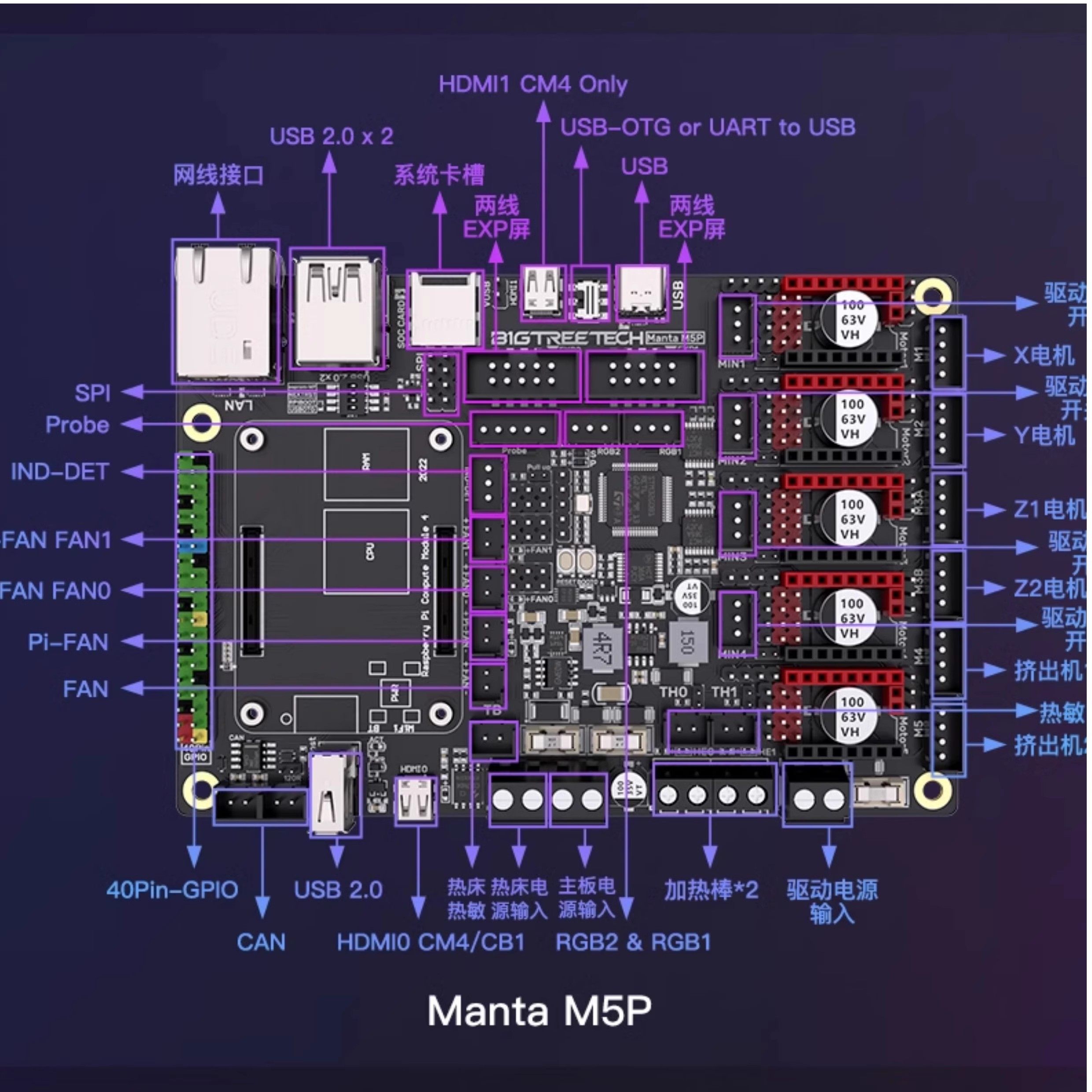 | 安装尺寸 | 请参阅BIGTREETECH MANTA M5P V1.0-SIZE-top.pdf |