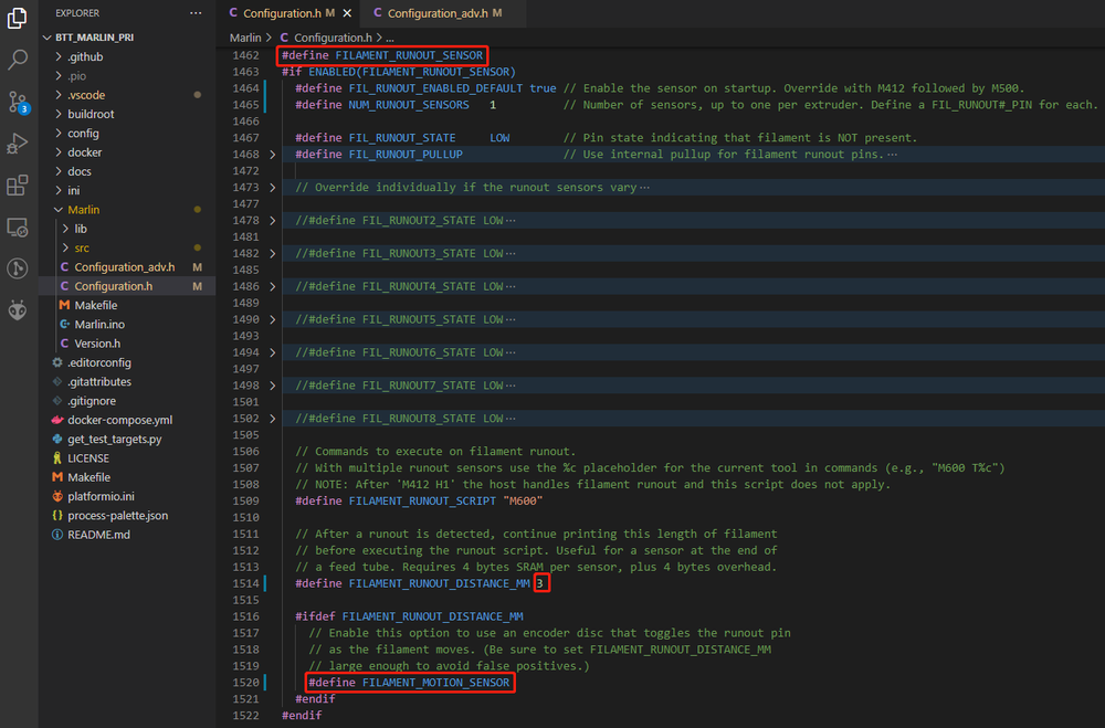 #define FILAMENT_MOTION_SENSOR // 设置耗材传感器为编码器类型