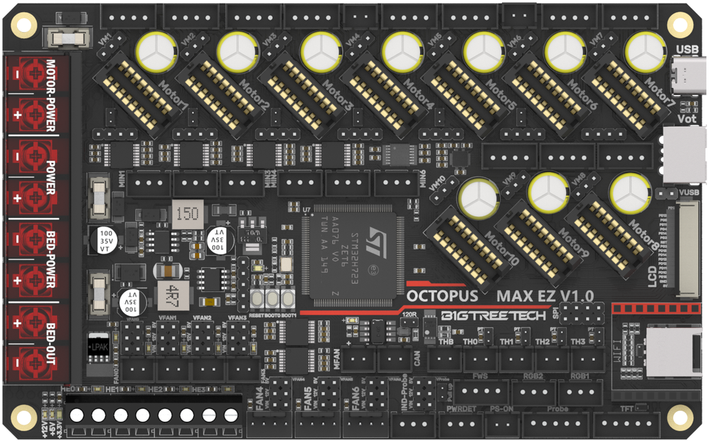 | 外观尺寸 | 160mm x 100mm 详情请参考: BIGTREETECH Octopus MAX EZ V1.0-SIZE.pdf |