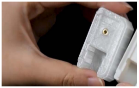 在此过程中,烙铁会加热螺母,使其缓慢熔入部件中; 请尽量耐心,螺母熔入的速度越慢,金属与塑料之间的结合就越牢固; 待螺母顶部与打印件表面齐平后,即可停止加热并取出烙铁。
