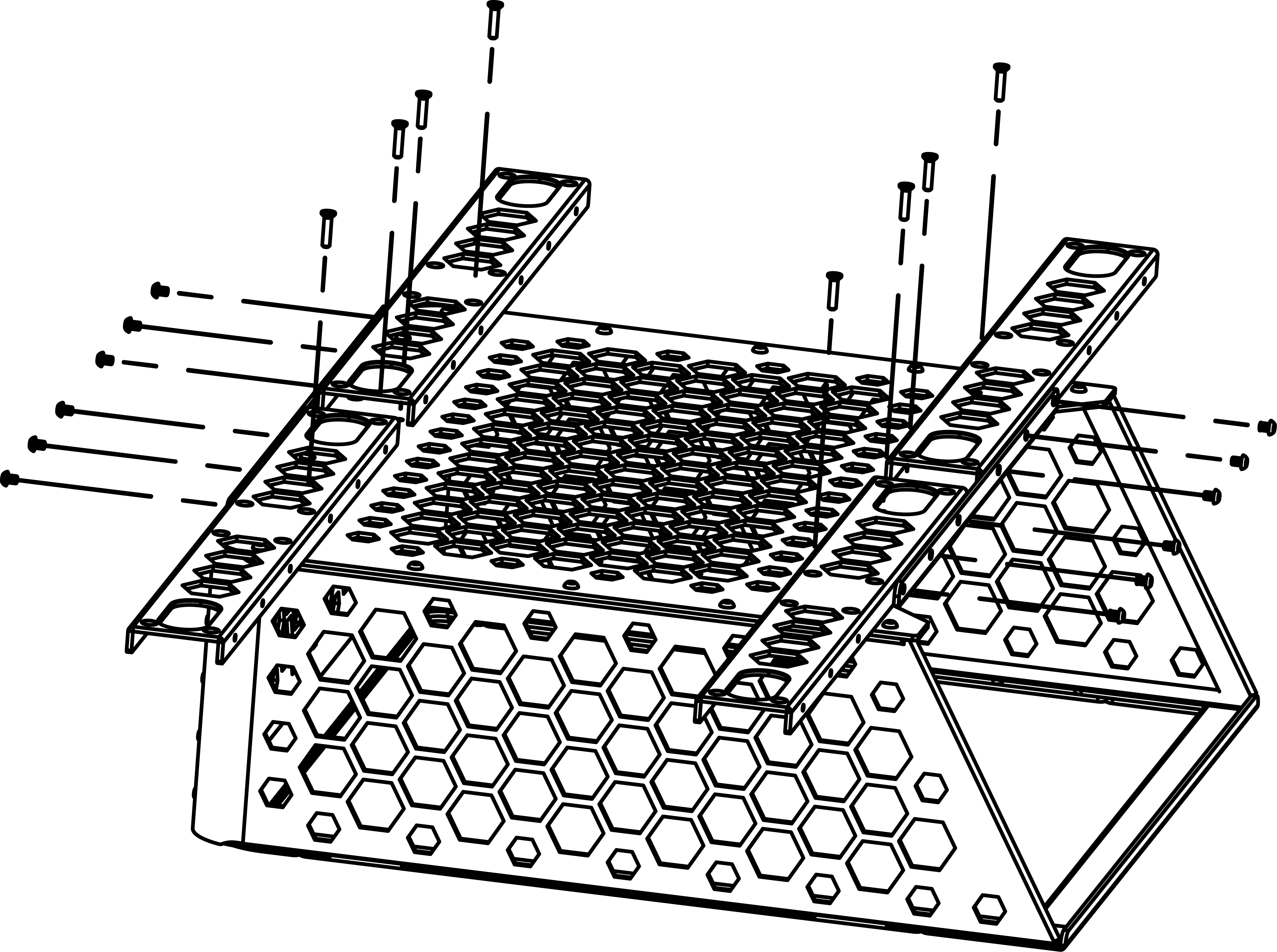 第四步 使用BHCS M3X4安装AMS支撑条,并使用FHCS M3X14固定在顶板上¶