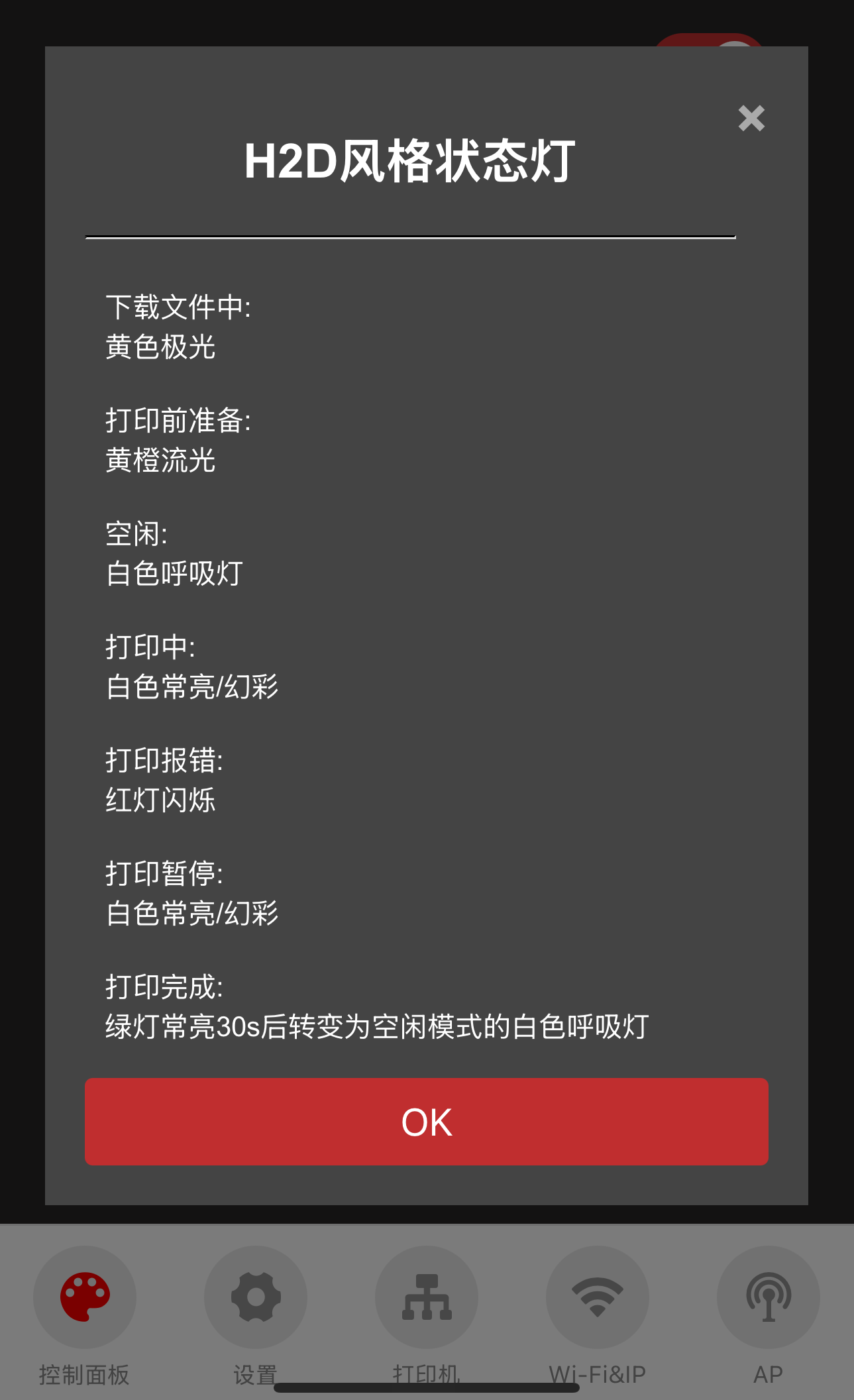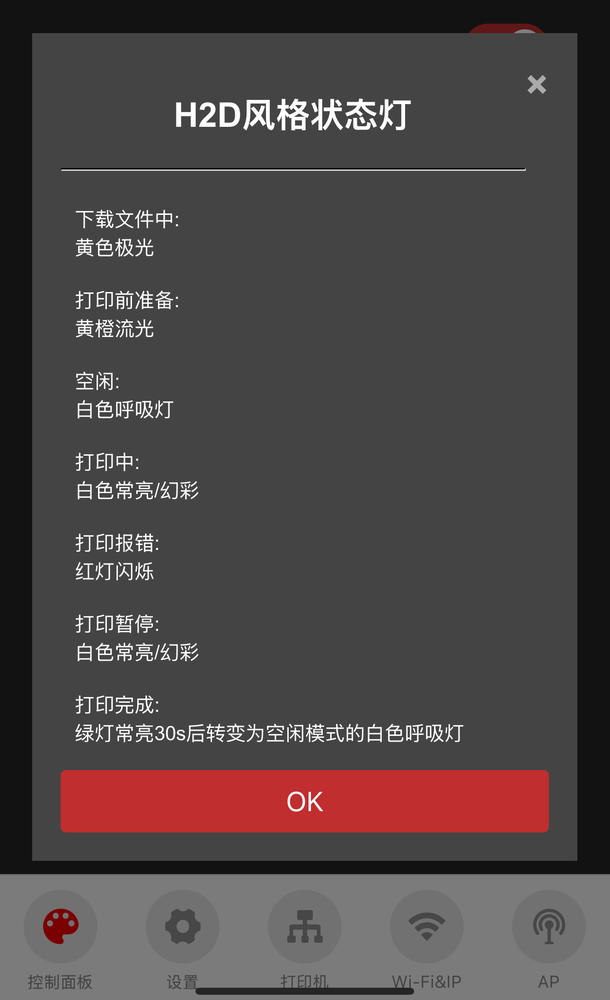 ④ 打印机库存灯亮起后,自动打开和关闭RGB效果