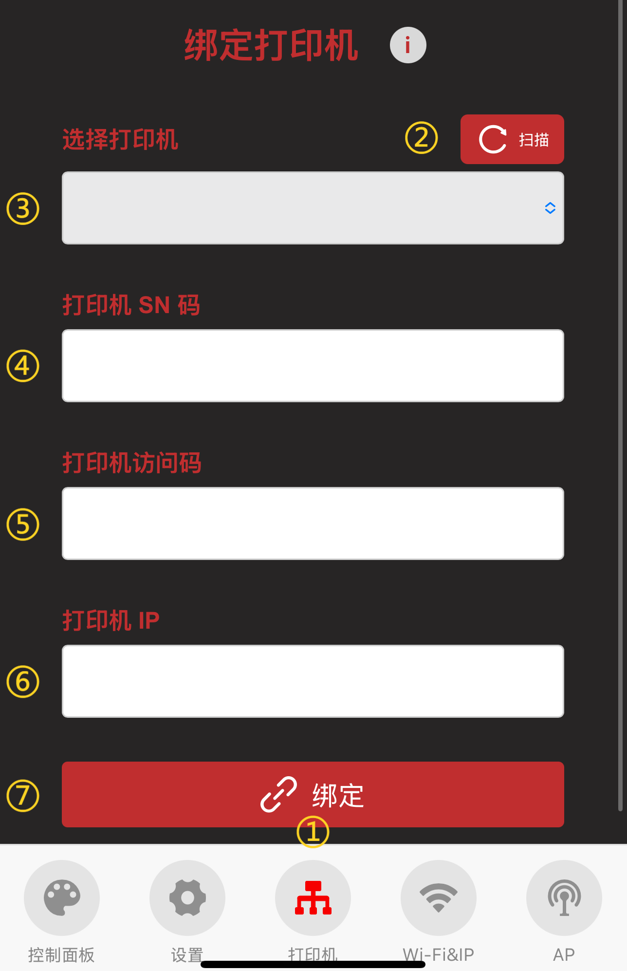 ⑦ 确定绑定此打印机