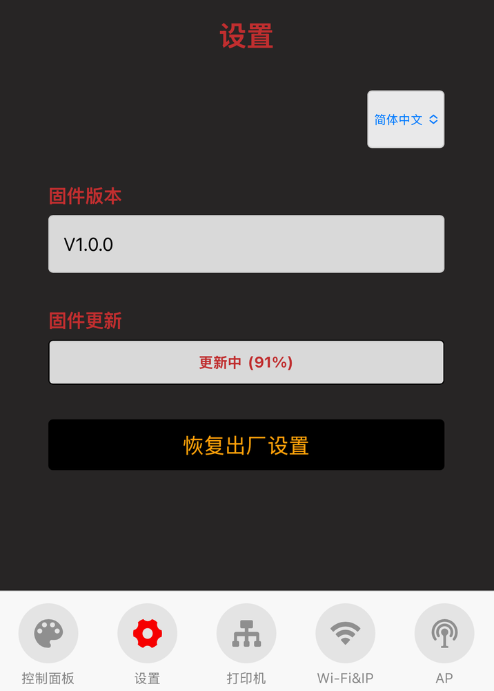 ① 选择打印机界面,点击后聚焦为红色图标,跳转至打印机界面