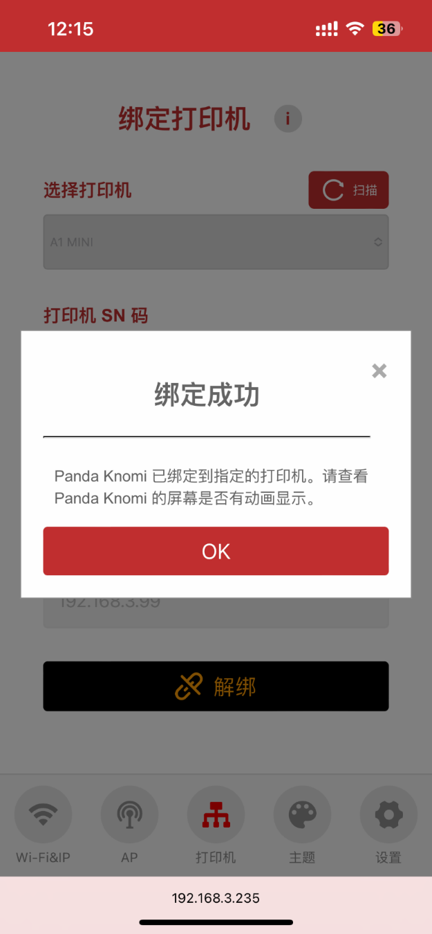绑定打印机,Panda Knomi可能不绑定打印机的问题 - 修复:打印完成后,