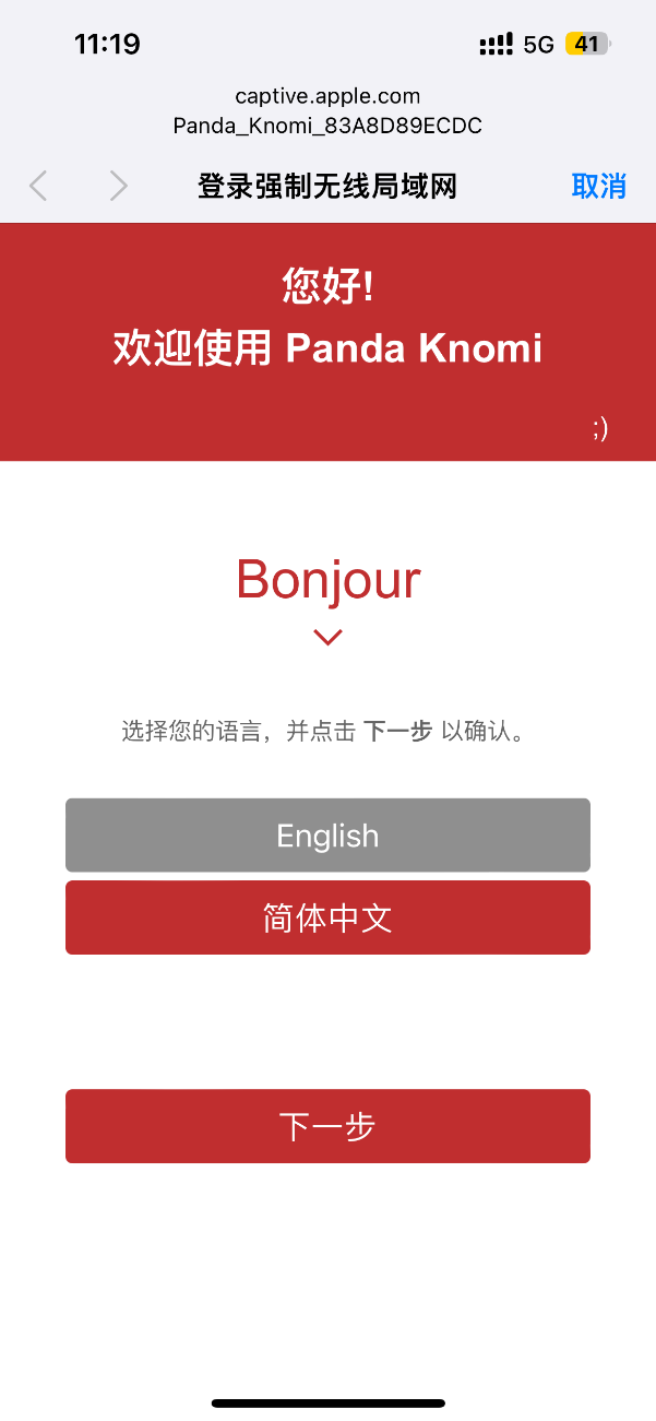 - Panda Knomi仅支持连接到2.4G Wi-Fi。