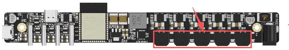 在A1mini打印机侧面找到一个未使用的 4pin 电源端口。再把转接线另一头的MX3.0 4pin接口插入到打印机的MX3.0 4pin接口,如下图所示。