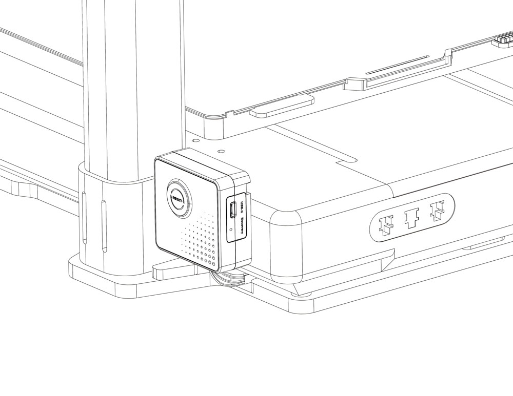 从底部安装附带的4颗M3*18自攻螺丝(无需翻转设备,将打印机移至桌边从下向上安装更方便)