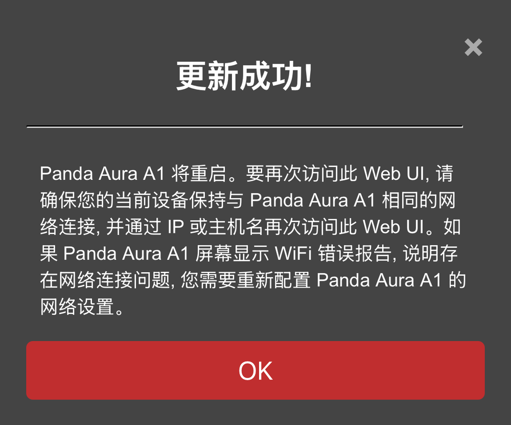 Panda Aura A1&A1mini 只监听打印机的状态,不控制打印机,所以 Panda Aura A1&A1mini 的功能不会受拓竹固件更新的影响。有关受影响和不受影响的更多信息,请参阅Bambu Lab 官方公告。