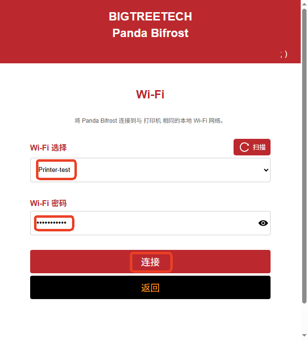 - 打开WEB UI, 点击 扫描, 然后选择 "PandaBifrost".