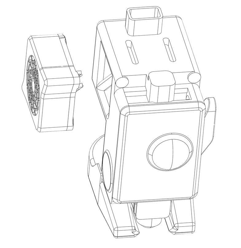 将RGB风扇模块扣合在挤出头左侧的支架上,确保固定稳定。