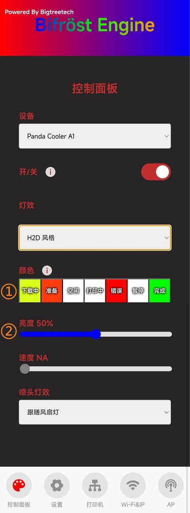 H2D状态灯逻辑:从0到100%,Panda Cooler A1 让您通过直观的灯光变化,轻松掌握打印进度。