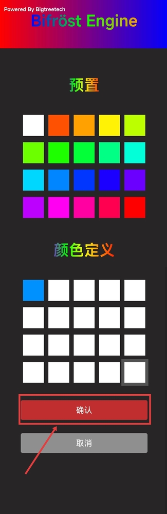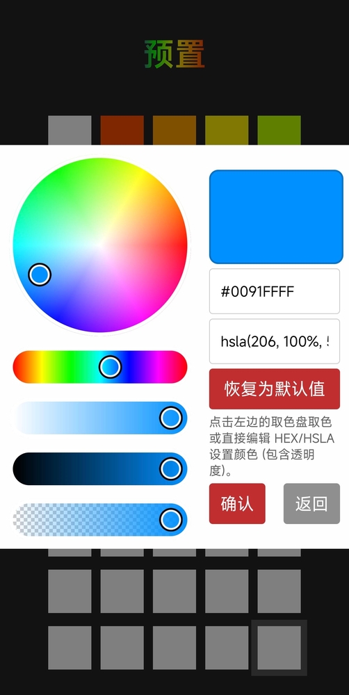 跳转到颜色设置界面,可选上方预设好的色块,也可自定义。下面简单介绍下自定义,点击下方白色色块。