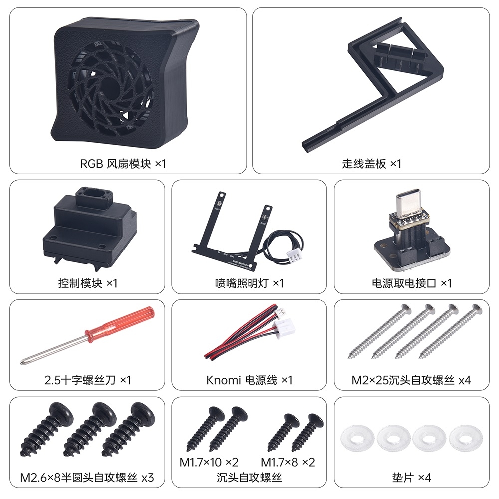 独立喷嘴照明系统:支持跟随风扇灯效同步变化或常亮白光照明模式,亮度可调节,方便观察打印过程和首层附着情况。