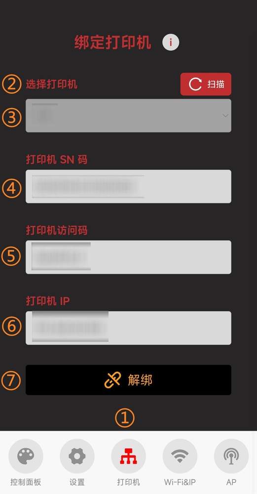 ⑤ :输入打印机的访问码
