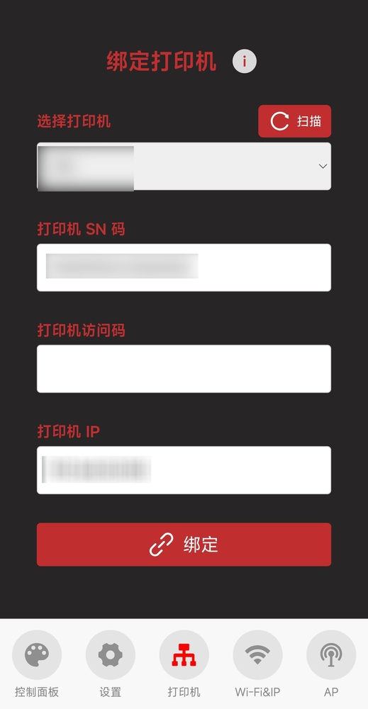 访问码输入到访问码框内,点击绑定即可开始绑定打印机。