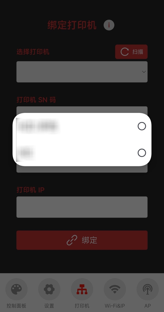 绑定打印机界面¶