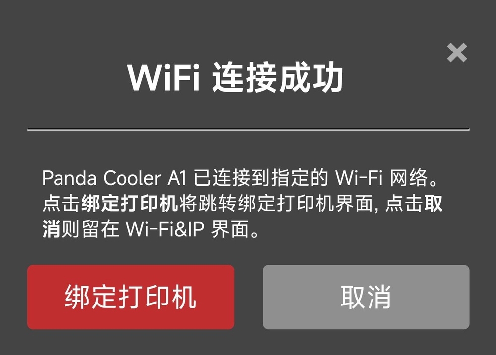 绑定打印机跳转到打印机界面,也可点击取消,继续待在WiFi界面