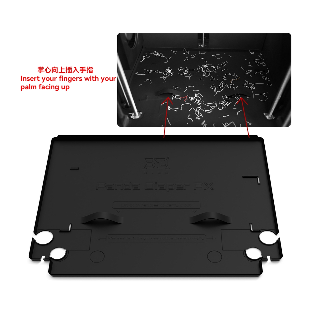 Panda Den 是专为 Bambu Lab P/X打印机 用户打造的仓内碎屑收纳产品。它让清理打印过程中掉入底部的碎屑更加轻松。