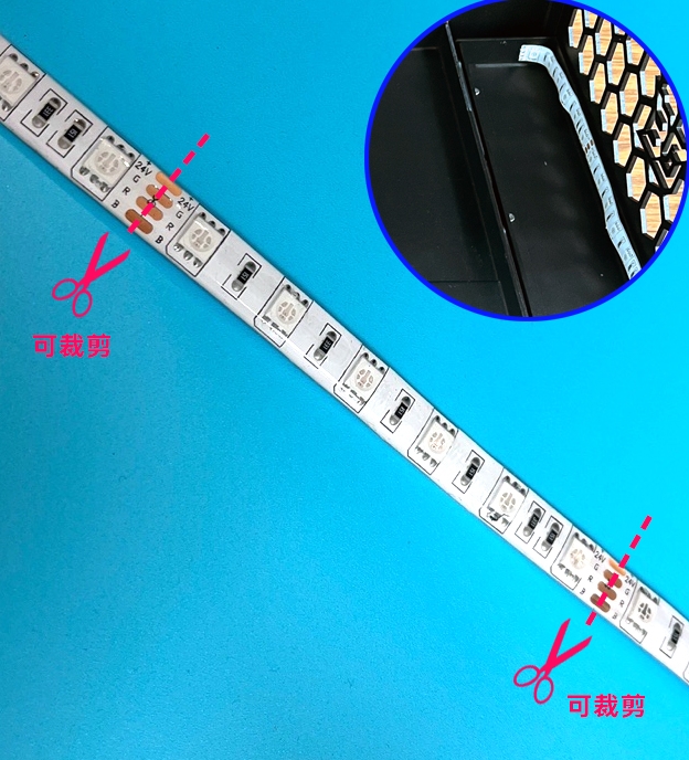 - 根据需要,沿灯条的裁剪线切割至合适的长度。