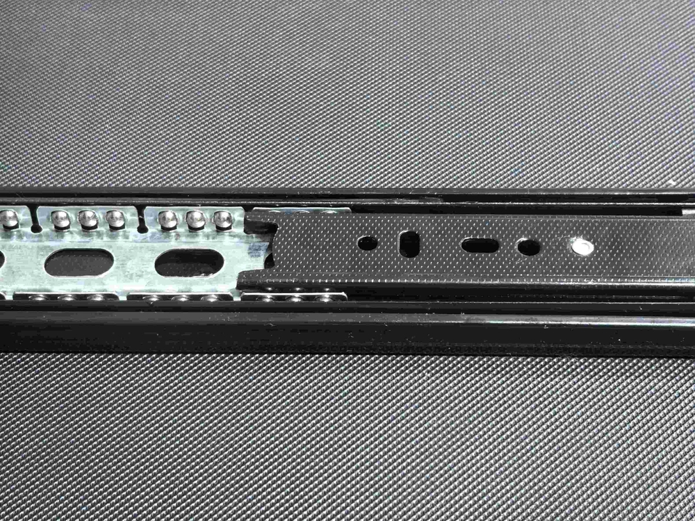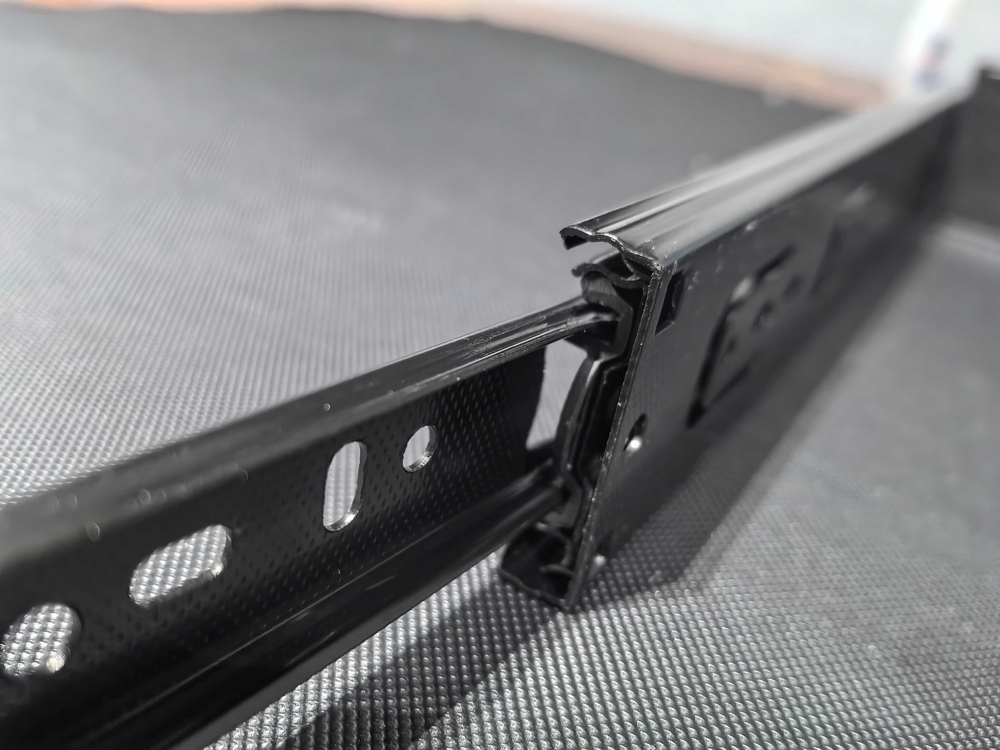 第四步,拿出下层抽屉,将抽屉导轨对准主体轨道插入(见下图),推到底即可