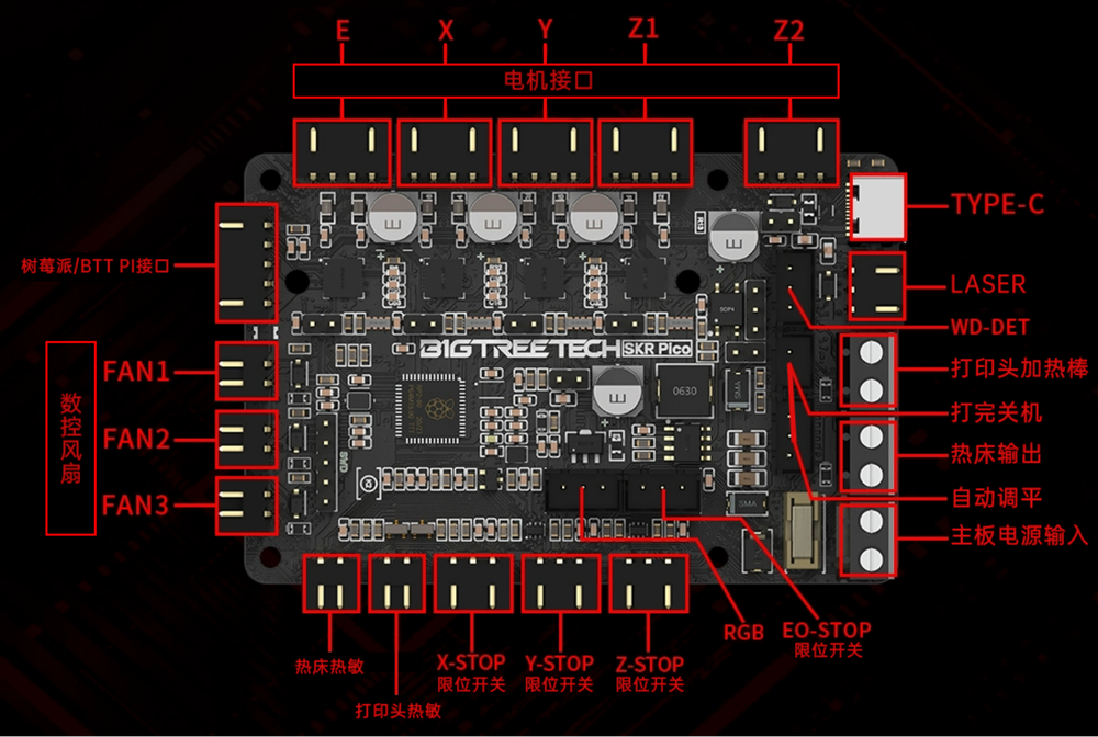 (3) 主板固件 DIY 请参考BTT SKR Pico V1.0-PIN.pdf资料。